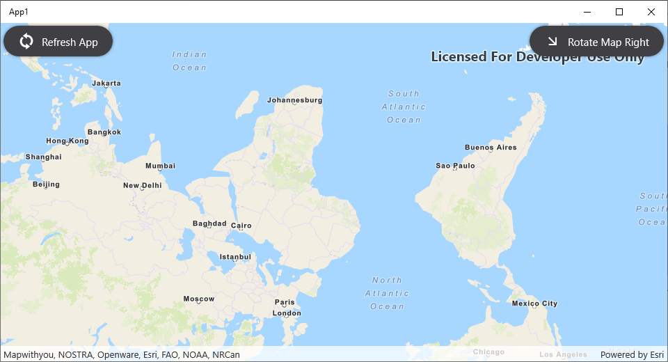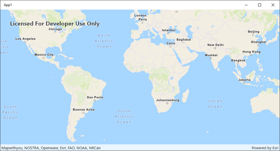 Set App1.UWP as your startup project. Build and run VertiGIS Studio Mobile and ensure only a plain map appears.