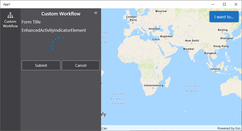 Implementing a custom form element allows you to augment the existing form elements that come with VertiGIS Studio Workflow. This article will walk you through creating a form element that displays a loading indicator.